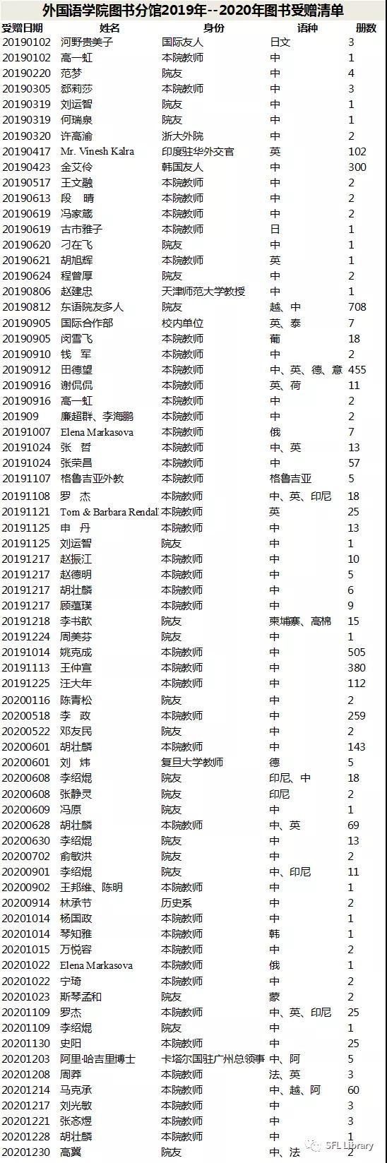 2019-2020年图书受赠名单