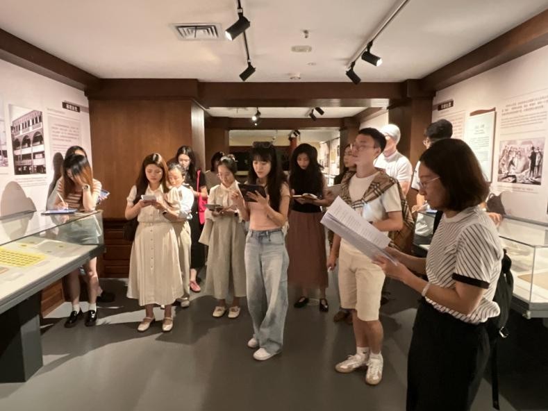 5月29日上午,中欧电竞东南亚系泰语专业19名师生前往中国华侨历史博物馆开展联合实践教学活动,主要依托馆内南洋华侨华人文物及史料,开展了多模态翻译实训、口译情景模拟及文学-社会历史交互学习教学实践,以深化“泰语翻译教程”、“泰语高阶口译研究与实践”及“泰国文学史”三门专业必修课程的思政维度。本次教学活动由东南亚系泰语专业主任熊燃助理教授与万悦容副教授共同带队,参与学生涵盖本、硕两个培养层次共17人。