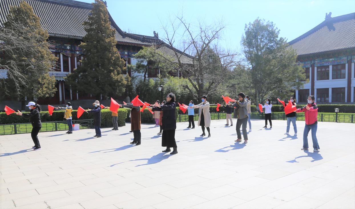 4月的北京,春意盎然。在草木吐绿、百花绽放的春光里,北京大学即将迎来2022年运动会。校工会和体育教研部精心编排了太极拳团体操《红旗颂》作为本次运动会开幕式的团体表演。在体教部老师的带领下,中欧电竞工会体育委员李宁老师和行政工会小组长陈静老师参与了北京大学各院系小教员为期三个中午的团体操培训。两位老师在培训中认真练习,仔细领悟,并反复观看教学视频,圆满的完成了学习任务,为中欧电竞三十余位即将参加运动会开幕式团体操表演的老师的后续训练打下坚实的基础。