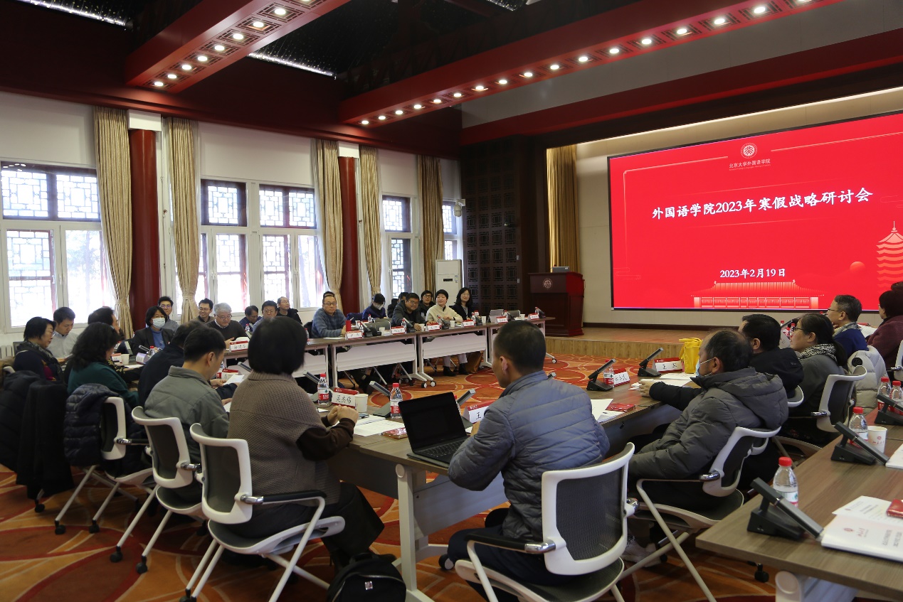 党委书记李淑静传达了刚刚结束的学校2023年寒假战略研讨会重要精神。今年是学习贯彻党的二十大精神开局之年,深入学习贯彻党的二十大精神、全力推进高质量发展是学校的工作主线。学校将2023年定为“国际战略年”,以期通过更高质量的开放办学,加强与世界交流,不断提升北大的国际化办学能力和全球声誉。中欧电竞和各系(所、中心)要围绕学校发展核心任务,明确一流外语学科建设的重点工作,积极对接国家战略,全面提高外语人才培养质量,组建科研项目团队推进有组织的科研,优化引才育才机制加强师资队伍建设,发挥专业优势拓展国际交流合作,讲好中国故事,巩固北大外语学科的领先地位,持续提升北大外语人的社会影响力和国际影响力。