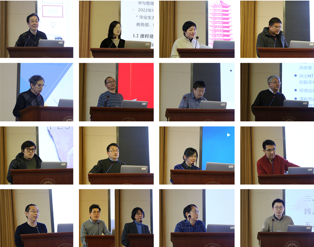 学院党政领导班子和学术委员会负责人结合各自分管领域和各系(所、中心)汇报内容提出了对各项重点工作的思考和建议。副院长付志明介绍了学院对学生国际交流的支持计划,鼓励各专业积极开拓国际交流渠道。副院长吴杰伟介绍了学校2022年“数字人文年”科研开展情况,对抓住2023年“国际战略年”机遇开展有组织的科研提出思考。副院长王丹介绍了2022年学院开展课程思政、“三进”工作等工作,从招生、培养、导师队伍建设、国际交流项目、举办外国语言文学研究生论坛等方面介绍了本学期研究生重点工作。党委副书记宋扬汇报了海外名家讲席、外专经费预算等工作,对更好开展虚拟课程建设改革提出思考。党委副书记王恒重点介绍了2023年学生军训工作计划,并从提高人才培养质量角度提出思考,请各系(所、中心)及时关注毕业生就业情况并给予必要支持。学术委员会主任王建对人工智能在人才培养中的应用和挑战提出思考。学位评定委员会学科分会委员、教师教学发展中心副主任林丰民介绍了学校教师培训体系和特色项目,对青年教师应用新技术手段开展高质量的课堂教学提供有力的支撑。
