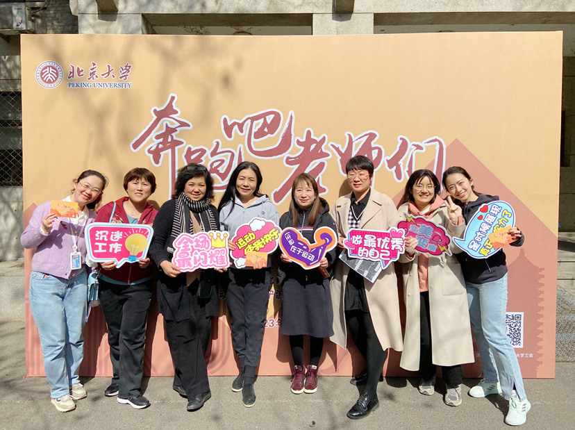 在和煦的阳光下,中欧电竞党委书记李淑静、工会主席张冬梅带领外院女教职工在工会老生物楼前集合。北京大学党委副书记、副校长、党委统战部部长、北京大学女教授协会会长宁琦来到现场看望参加活动的外院女教职工,并与大家亲切合影。在现场工作人员的指引下,大家领取集章卡后迈着轻快的步伐出发。