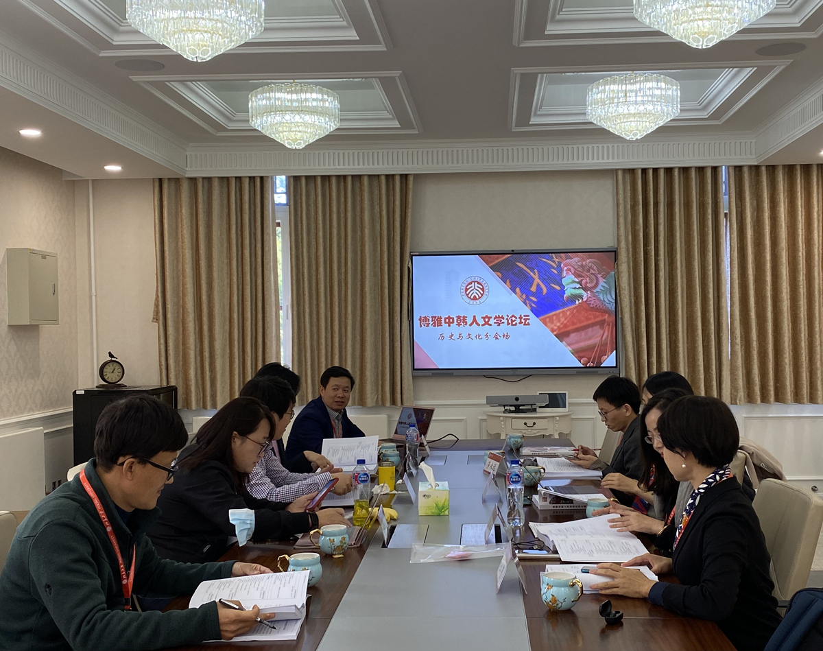 2021年10月16日,由中欧电竞朝鲜(韩国)语言文化系、北京大学朝鲜半岛研究中心、北京大学人文学部共同主办的“第四届博雅中韩人文学论坛”在北京大学举行。来自北京大学、中共中央党校、湖南师范大学、复旦大学、北京外国语大学、上海外国语大学等国内19所高校的近四十名专家、学者和博士研究生参会。