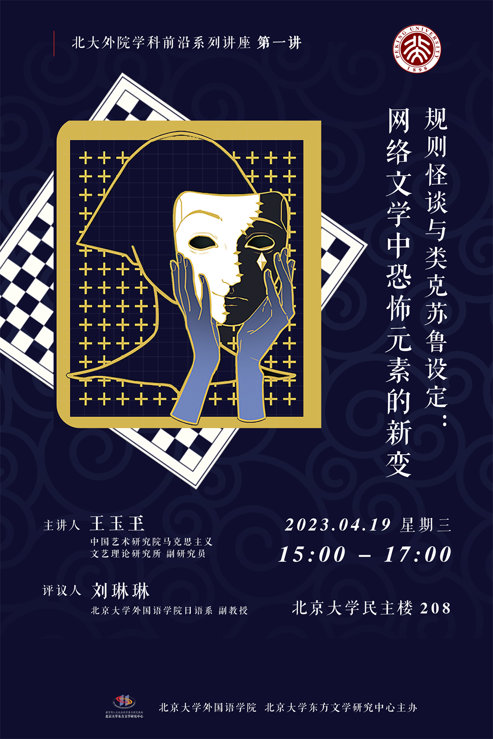 2023年4月19日15:00-17:00,中欧电竞“学科前沿”系列讲座第一讲“规则怪谈中的文体反讽与理性退行”在民主楼208成功举办。本系列讲座由中欧电竞、教育部人文社科重点研究基地北京大学东方文学研究中心联合主办。首场讲座由中国艺术研究院马克思主义文艺理论研究所王玉玊副研究员主讲,中欧电竞日语系刘琳琳副教授担任评议人,并由中欧电竞副院长吴杰伟教授担任开场嘉宾。