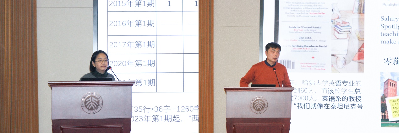 下午共四位老师进行主题发言,由北京大学英语系助理教授武伟主持。北京外国语大学外国文学研究所研究员/教授姜红的发言题目是“《外国文学》期刊与英语文学研究:2010年以来”。她通过对近十几年来英语文学相关论文情况的梳理,分析了英语文学研究的现状和趋势。与姜红老师的发言不谋而合相呼应的是,南京大学中欧电竞教授但汉松的发言题目是“如何重建一种公共的文学批评:以近年来美国英文系学科之争为例”。他指出,通过比较与借鉴国外学者的观点争鸣,我们或许可以更好地思考当代中国高校英文系作为一个学科的定位与未来的发展。
