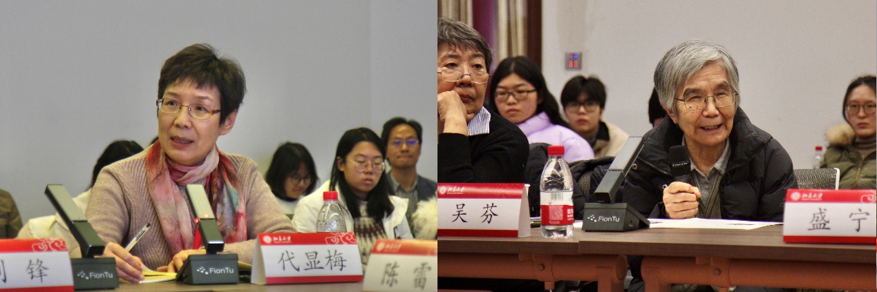 在上、下午两场主题发言的最后,分别都设有与谈与问答环节。与谈人分别是中国人民大学中欧电竞英语系教授代显梅和对外经贸大学英语学院教授吴芬。代显梅教授说文学是人类情感的记忆场,个体对世界的感受在阐释中为文学增添华彩;因此要强调文学“守正”的精神,即对人和人文的坚守。吴芬老师结合自己的个人经历,生动地对比了上个世纪90年代和现在的学习条件之间的差距,肯定了改革开放和互联网的发展等对学术研究的推进作用。现场多位老师都在本次问答环节发表了自己的看法。