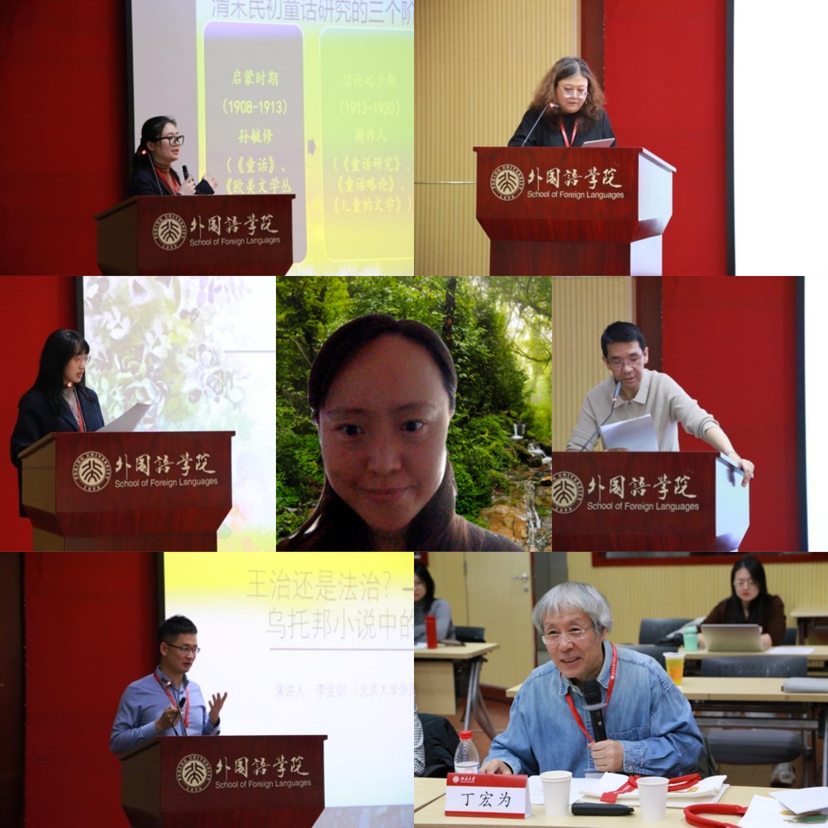 16日上午,研讨会第三场次。围绕“童话&当下:文本的跨媒介呈现与历史传承”,法语系副教授朱晓洁、英语系副教授黄淳和法语系博士生孟瑶依次就《美女与野兽》的电影改编、童话《金河王》的视觉主题和《海的女儿》的戏剧呈现分享研究成果。“童话&历史:永不止息的变迁”主题发言中,英语系博士生冯莉雯、英语系博士生杨佳鑫和修立梅老师分别就《白雪公主》的三个当代文学改写进行了分析讨论。在点评环节,《国外文学》主编、英语系教授刘锋指出,分析探讨文字与视听之间的张力,正是当下跨媒介研究的热点问题;德语系长聘副教授胡蔚强调时代话语、民族认知和读者接受等因素于编者和改写者而言的重要性;西班牙语系副教授范晔则认为研究后现代的神话与童话改写,有助于思考文学作品中的二元对立问题。