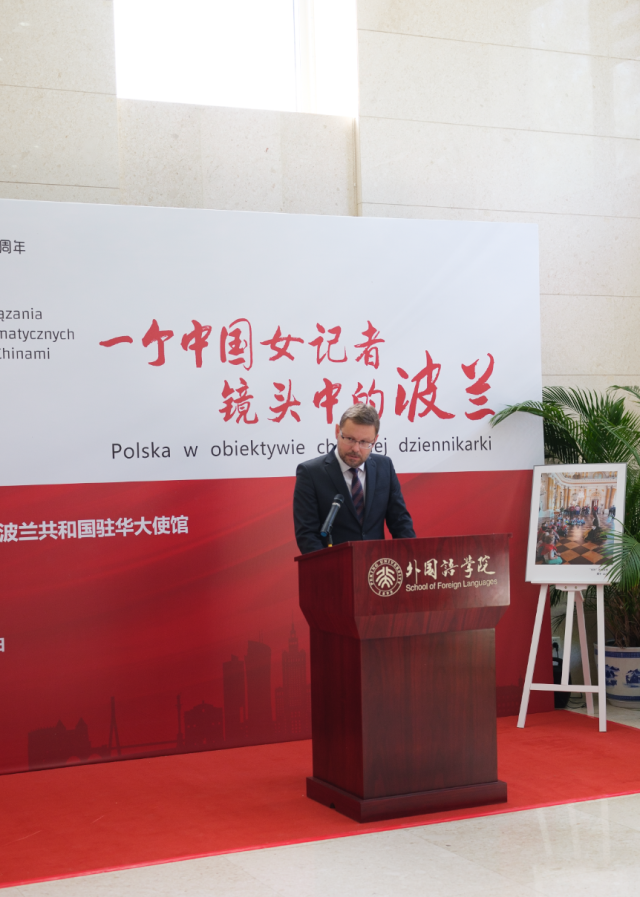 北京大学党委常委、宣传部部长蒋朗朗先生致开幕词。蒋朗朗先生对本次摄影展的召开表示了衷心的祝贺,在致辞中,他回顾了中欧两国70年来的友好情谊,并表示希望以此次摄影展为契机增进青年一代对波兰文化的了解,同时加强中欧电竞与波兰学者、研究机构之间的联系,为中波友好关系添砖加瓦,建言献策。