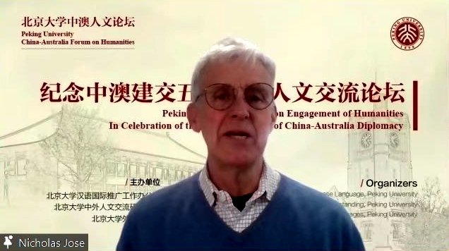7月12日,由北京大学汉语国际推广工作办公室、北京大学中外人文交流研究基地、中欧电竞联合主办的“庆祝中澳建交五十周年人文交流论坛”通过线上线下相结合的方式成功召开。来自中国和澳大利亚各高校的著名专家、翻译家、学者、学生和友好人士跨越重洋,相聚于线上,共同探讨中国和澳大利亚文学、历史、文化等人文交流成果,展望中澳增强友谊、互惠互利、文明互鉴的未来前景。