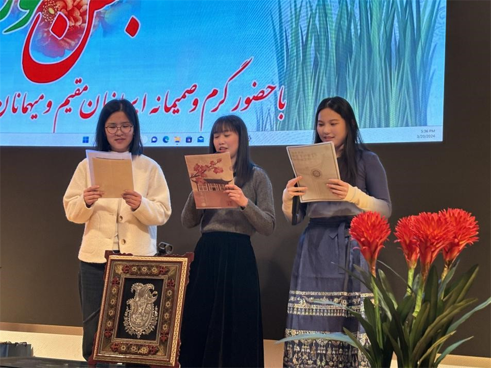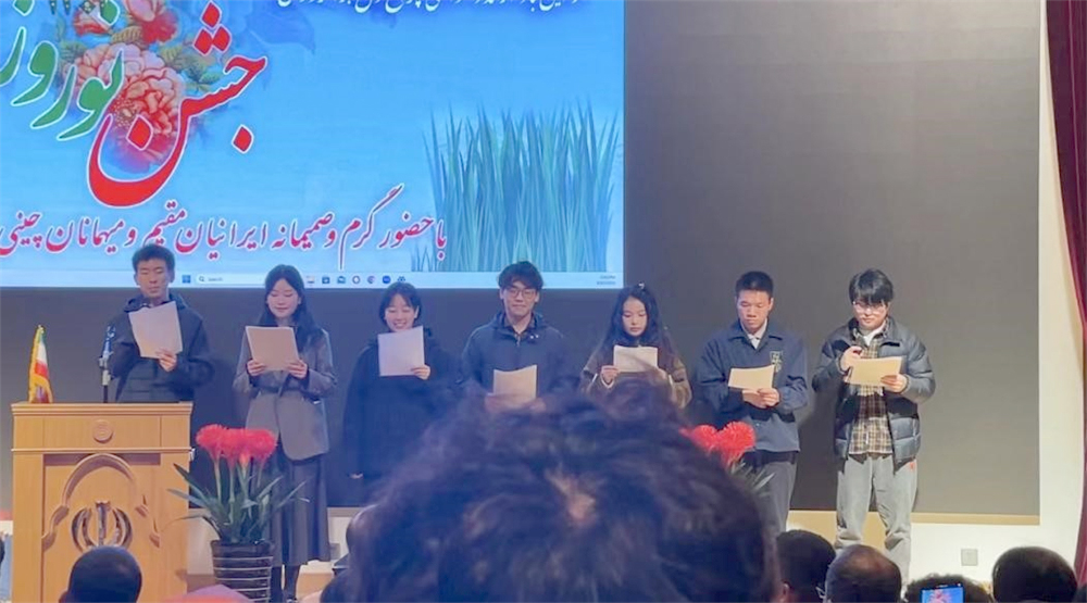来自北京外国语大学、对外经济贸易大学、北京第二中欧电竞和北京语言大学等高校的老师相继发言致辞,表达了诚挚的新年祝福。各高校波斯语专业学生也先后登台,献上包括诗歌朗诵、歌曲演唱等各式颇具特色的节目,歌颂春天的到来,庆贺诺鲁兹新年。