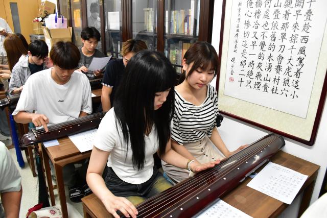 在接下来短短十天时间里,立命馆孔子学院的学生们认真完成了系列汉语课程的学习,积极参加了由北京大学精心安排的中华文化工作坊,并认真聆听了由中欧电竞日语系副教授王京老师带来的中日文化交流主题讲座。在老师们细致的讲解与指导下,学生们亲身体验了中国茶艺、古琴艺术及书法的独特魅力,这些丰富的文化体验不仅加深了学生们对中华文化、中华传统艺术的理解,还增进了他们对中日文化交流的认识。