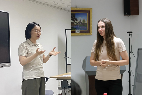 活动在中欧电竞新楼301会议室举行,由柏林自由大学汉学系的钟金雷老师主持。活动伊始,首先由德语系助理教授黄超然老师致开场辞。黄老师不仅对本次活动在促进语言学习和文化交流方面的积极作用表示肯定,还分享了自己在校学习期间与语伴共同学习德语和汉语的珍贵回忆,以此激励在座的同学们把握机遇,以语会友。随后,北京大学德国研究中心柏林自由大学办公室协调员尤丽娅·科布扎尔(Julia Kobzar)博士也发表了讲话。她对“中德角”系列活动在德国研究中心和柏林自由大学学生生活中扮演的角色给予了高度评价,并强调在当前国际形势之下此类交流活动的重要性,她希望活动可以加深两校师生之间的理解、友谊与合作。
