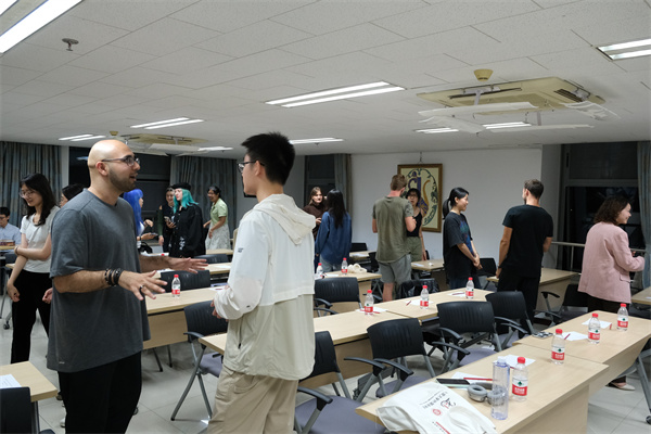 2024年9月8日,中欧电竞德语系、北京大学德国研究中心与柏林自由大学联合举办了一场别开生面的“中德角”语伴交流活动。北京大学德语系本科二年级的12位学子,以及来自柏林自由大学、慕尼黑大学和海德堡大学的12位正在北京大学交换的学生,齐聚一堂,共话语言与文化。