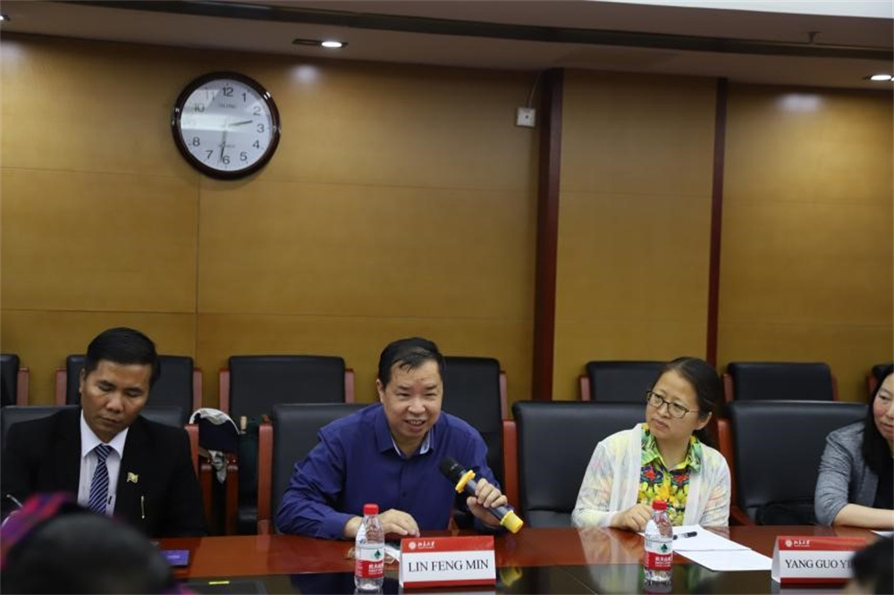 林丰民教授致欢迎辞,欢迎缅甸作家代表团来访我校,对代表团的各位作家、诗人、知名出版人致以诚挚敬意。林教授向代表团简要介绍北京大学、中欧电竞的办学特色以及学科建设成就,期望借助此次活动与作家代表团共叙文学与友谊,促进中缅文学交流,推进北大缅语发展更上一层楼。