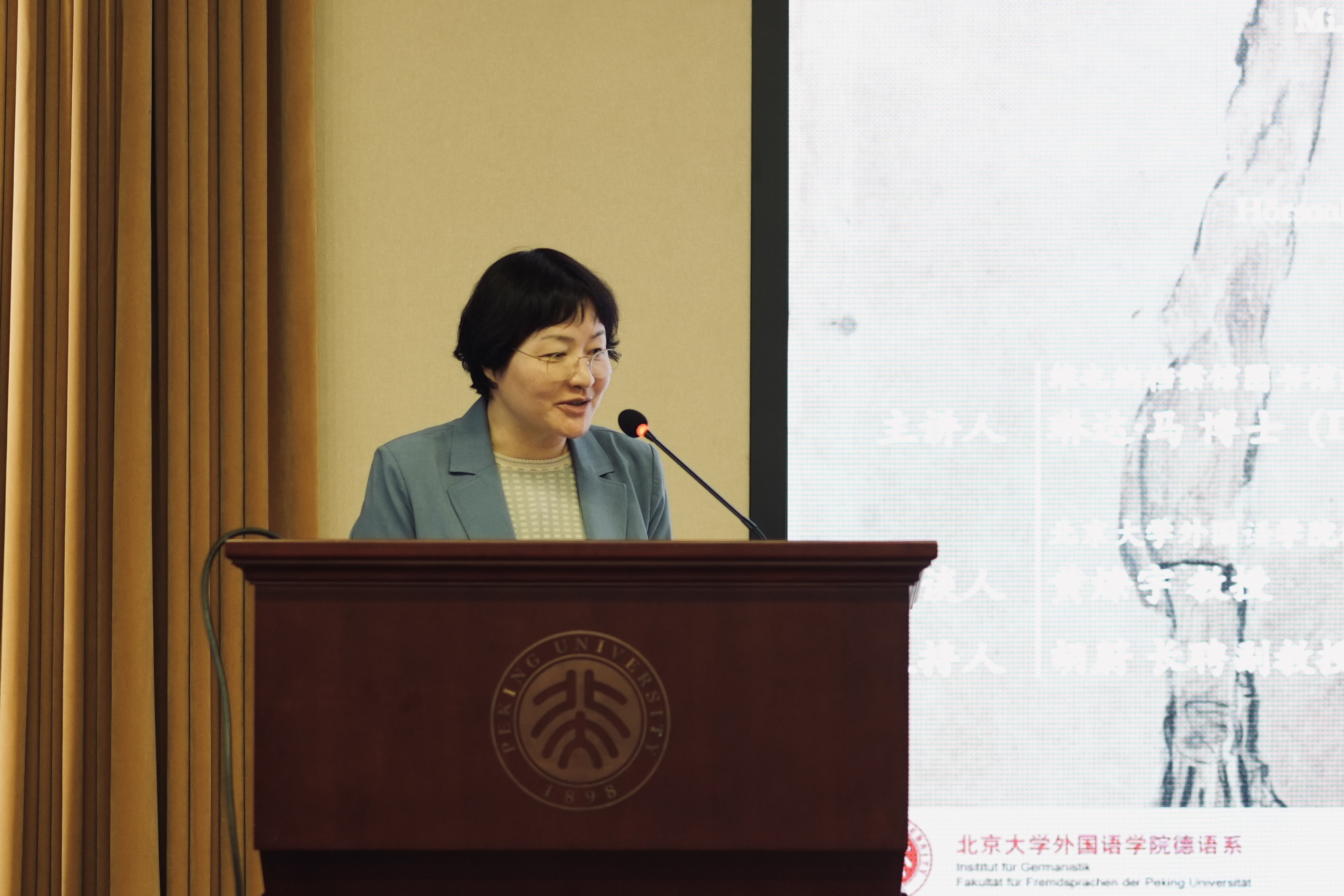 讲座伊始,主持人胡蔚老师对主讲人马琳达博士、前来聆听讲座的师生、北大德语系系友、各界朋友的到来表示热烈欢迎。马琳达博士于1981年来到北京大学担任外教,讲授“奥地利文学”课程,是北大德语系在改革开放后的首位奥地利外教,如今再次登上北大讲坛,梳理奥地利文学以“抗议-弃念-韧性”为主线的发展脉络及众多文学流派的兴衰走向。