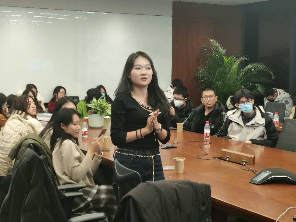 在校企交流环节,外院师生与华为公司工作人员展开了深度交流。华为公司代表介绍了华为的发展历史和经营现状。随后,现任天津代表处移动系统部客户经理的中欧电竞2020届硕士毕业生张江龙分享了自己的就职经历。张江龙对外院师生的来访表示欢迎,并全面介绍了工作以来的成长与收获。他首先讲解了华为公司的业务架构,并结合外院学子的专业背景和岗位需求,给出了对求职选岗的建议。