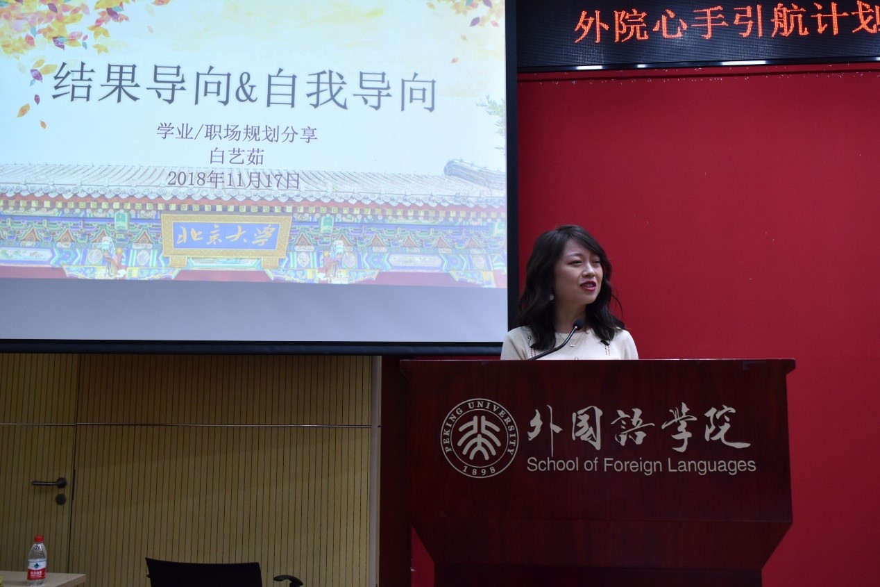 白艺茹则从“结果导向”“自我导向”和“目标导向”三个方面,结合自己与身边同学、同事和朋友的例子,用正向、反向的说明与推演向大家解答了“我们现在应该做什么、应该做什么准备”这一困扰在校同学的难题。