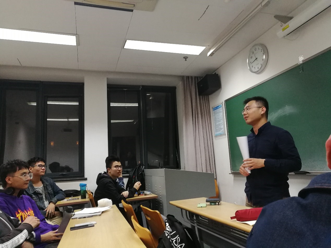 2019年4月18日20:40,中欧电竞2018级法语专业本科生班在四教407举办“学规矩、讲规矩、守规矩”主题活动,2018级法语专业所有本科生均参加了班会,学习活动由班长宋若瑾主持,辅导员李涛为同学们宣讲校规校纪。