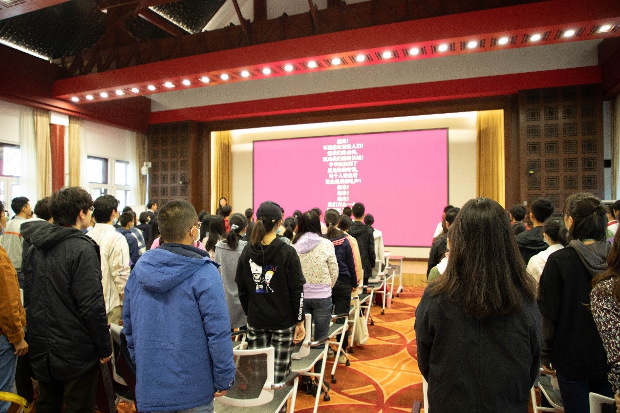 典礼开始前,播放了学院战“疫”工作总结视频,展示了疫情期间学院在日常学生工作、学生思想引领、专业志愿服务、学生活动开展、思政实践工作等方面的成果,同学们认真观看,加深了对外院和外院团学工作的认识。