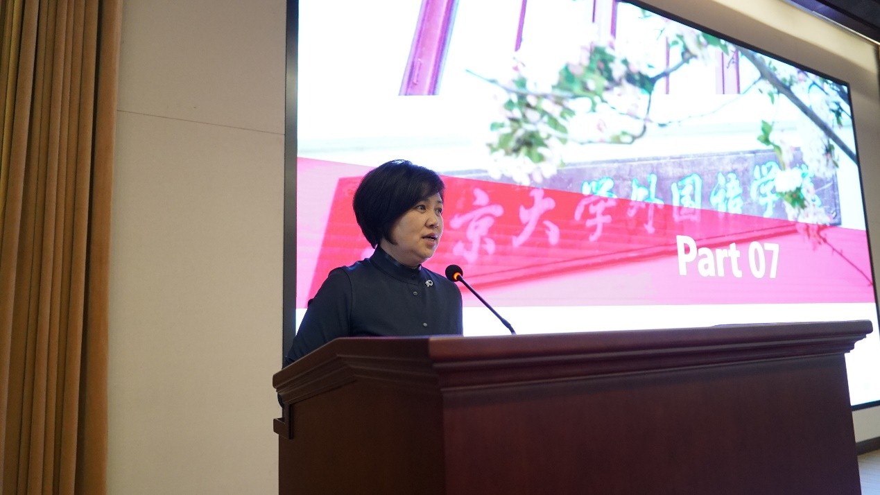 李淑静老师首先感谢校团委对外院团学工作的大力支持,并对上一学年外院团校的工作给予了充分肯定。李老师向同学们提出了三点希望:一是热爱祖国、坚定理想,她结合疫情期间外院师生、校友的辛勤工作和突出贡献,带大家体悟了“爱国是立德之源、立功之本”的深切内涵;二是指出外语学习需要不断磨练,要求同学们勤学笃实、求真力行,利用综合性资源和实践机会,积极学习有利于国家发展的知识技能;三是希望大家团结奋进、守望互助,在团校学习中广结益友,提升集体凝聚力,带动青年们奋发向上。