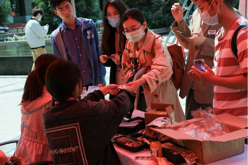 本次文化节活动共设有兑奖、美食、游戏、拍照四个区域,吸引了来自全校同学的关注,活动区域人来人往。