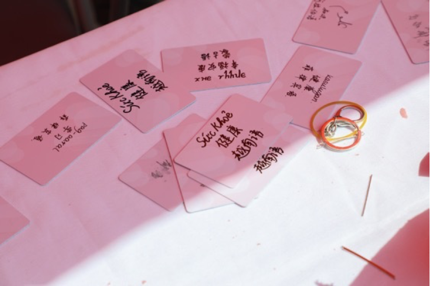 兑奖区域为同学们准备了由中欧电竞学生会和新媒体中心精心设计的多种文创产品,包括卡套、多语种祝福卡片、明信片、电脑贴纸、马克杯、帆布袋等。这些文创产品具有鲜明的外院特色,用不同的语言写满对同学们的祝福,展现了丰富多彩的世界文化,同时也传递了满满的爱。