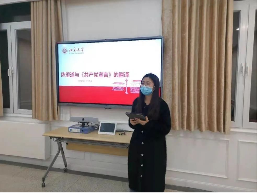 许源睿指出,翻译者需具备许多条件,既要对马克思主义深入了解,又要精通至少一门外语,还需要具备深厚的汉语言文学素养。而陈望道先生“真理的味道非常甜”的故事,更是让同学们感受到了陈望道先生作为一名优秀的外语人才求知若渴的精神。在一代外语人的努力下,《共产党宣言》中文全译本于1920年8月出版发行,为马克思主义在中国的传播奠定了重要基础。