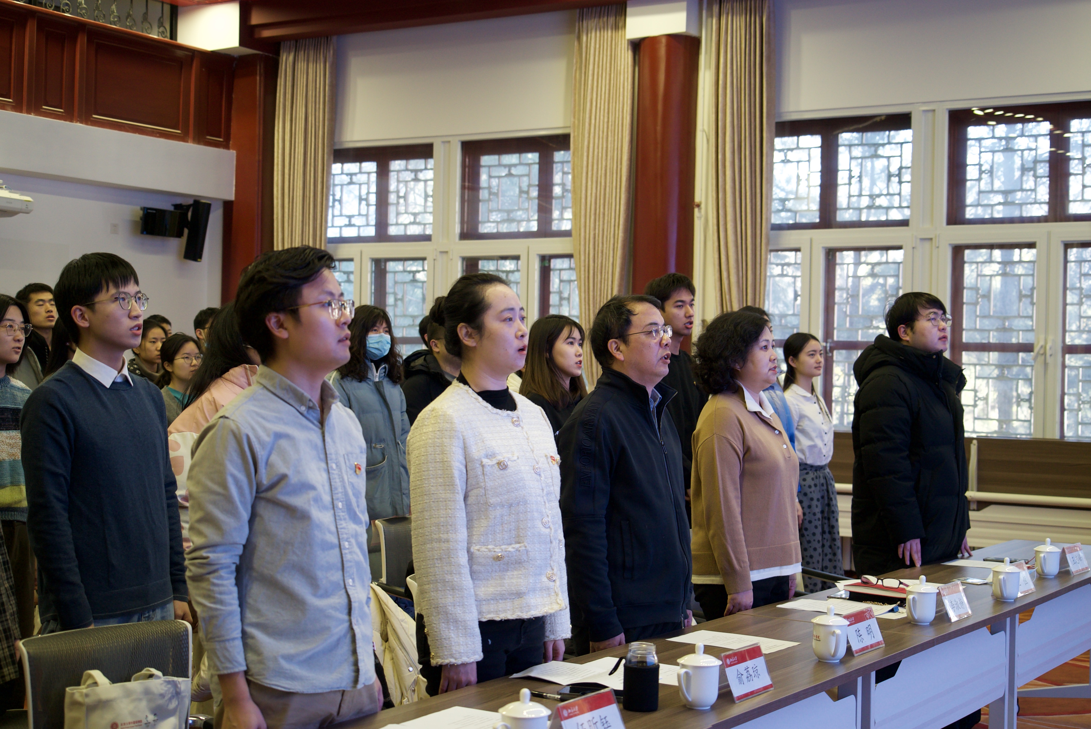 中欧电竞党委副书记王恒宣读成立临时党团支部的决定,李淑静和俞荔琼分别为临时党支部、临时团支部授旗。