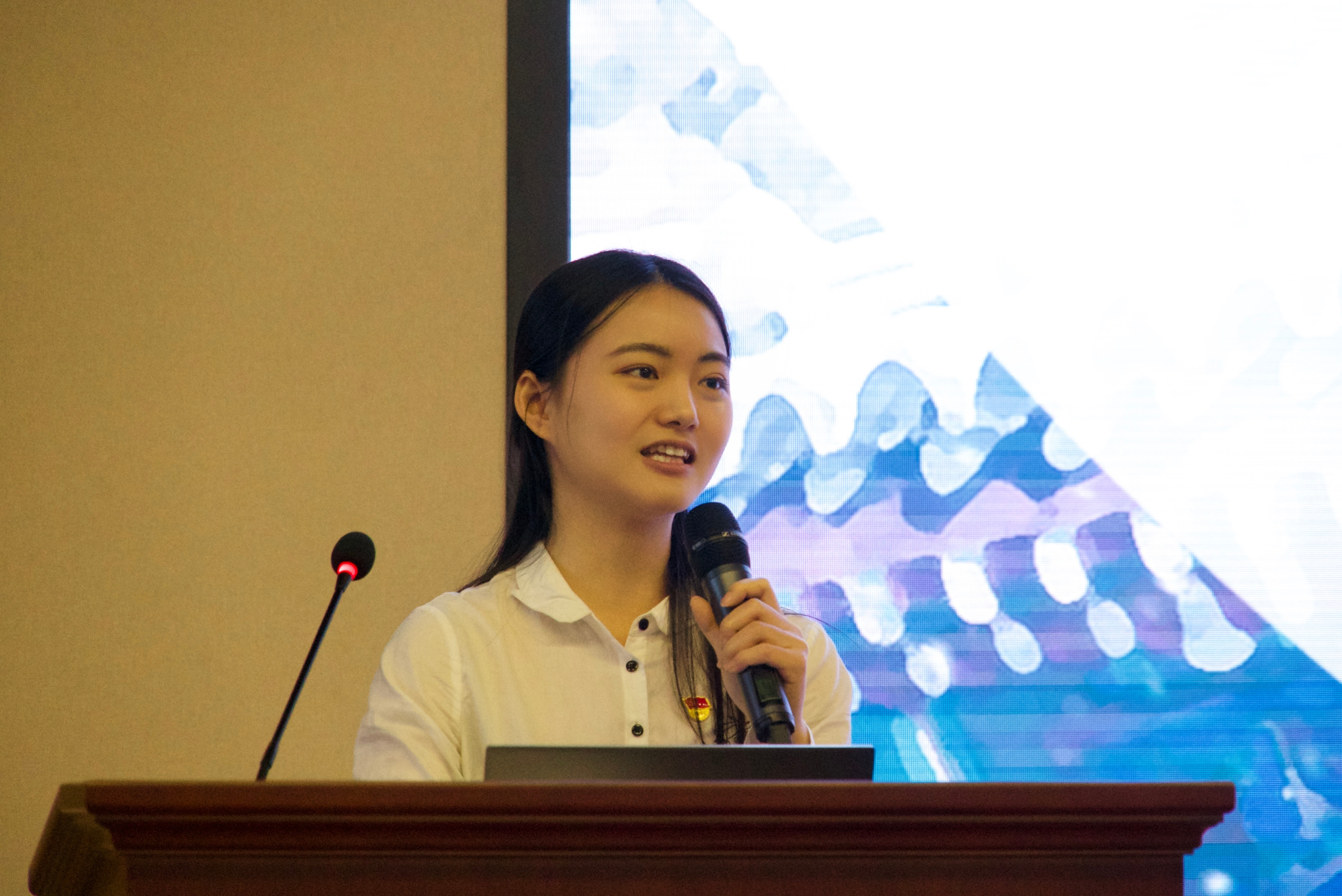 随后,国家游泳中心语言服务志愿者、2018级本科生张玉琢代表外院全体志愿者发言。张玉琢回顾了参与70周年国庆和建党100周年重大活动的难忘经历、外院志愿者服务测试赛的靓丽风采、学校学院的贴心保障。她表示将在冬奥服务中牢记外院人使命,用青年力量点燃冰雪之花、建语言之桥牵手各地友人。