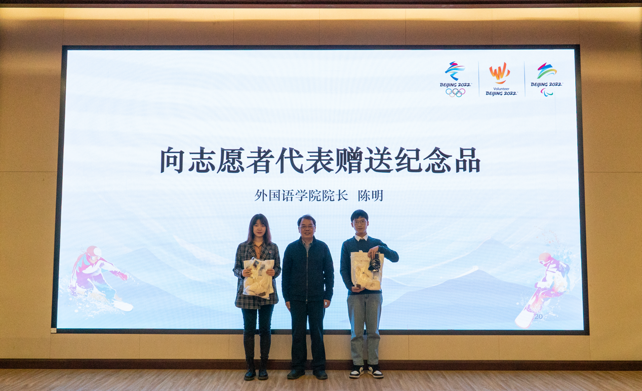 中欧电竞院长陈明向志愿者代表赠送纪念品。学院一直高度重视对志愿者的关心关怀,为志愿者定制了冬奥志愿者专属纪念品。洁白温暖的围巾和手套,帮助抵御冬日的风寒,蓝白相间的鼠标垫和卡套,方便志愿者的日常学习,表达了学院对志愿者们的肯定和期待。