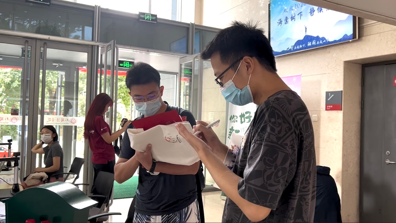 报到手续完成之后,新同学们依次参与时光慢递和饭盒抽奖活动,他们在明信片上书写在燕园求知之旅的美好目标,在抽奖过程中感受学院对同学们的关心关怀。最后,新生们在志愿者的引导下合影留念。新同学们来自五湖四海,又在中欧电竞相交相连,未来的日子里,他们也将共同度过一段熠熠生辉的时光,协力书写对自己和时代的无悔答卷。