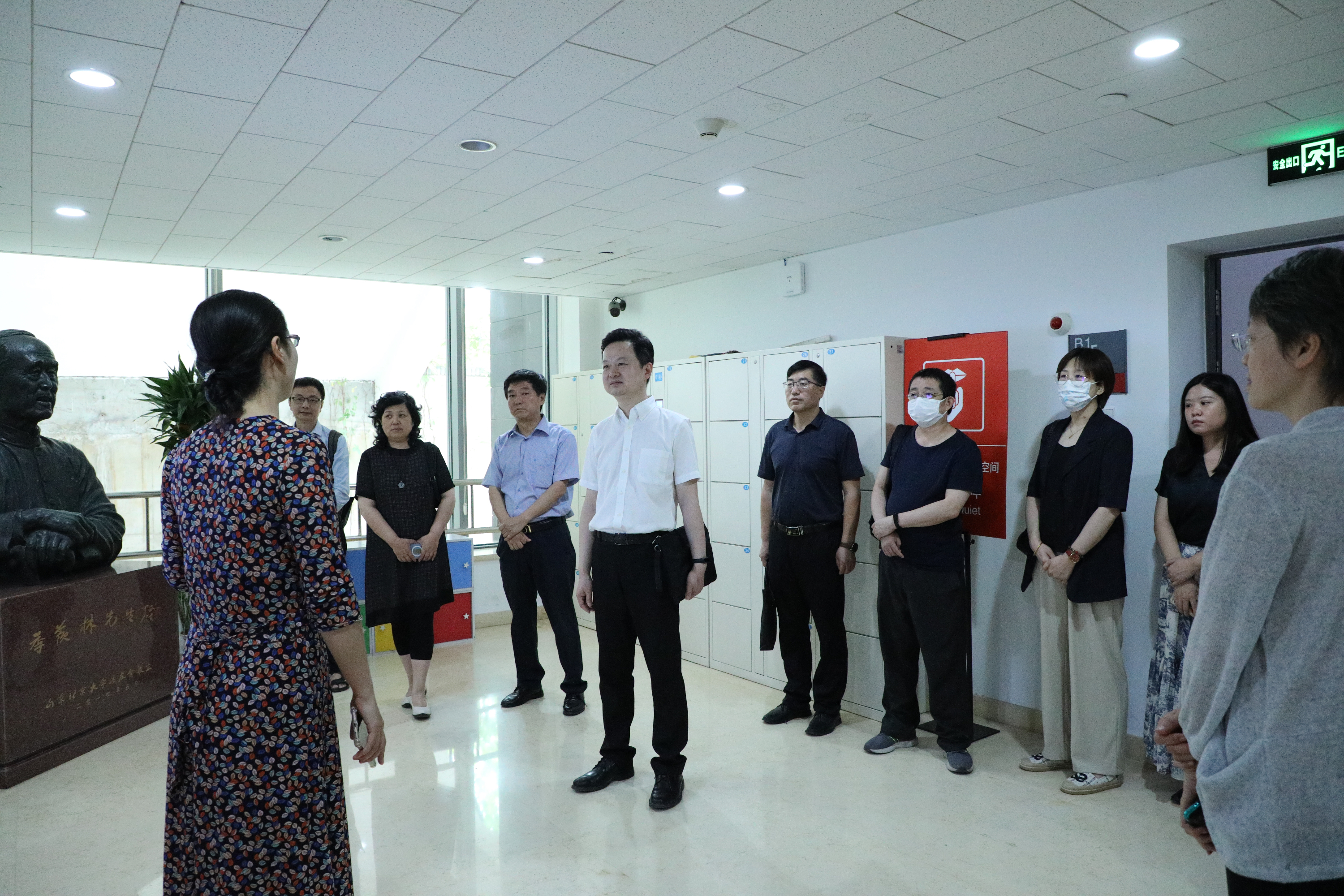 签约仪式前,华侨历史博物馆副馆长宁一、贾德成一行来到北京大学图书馆中欧电竞分馆参观,院党委书记李淑静、副院长吴杰伟陪同,图书分馆馆长张晓雁向华侨历史博物馆的领导和专家们介绍了外国语言文学学科的图书资料建设情况。