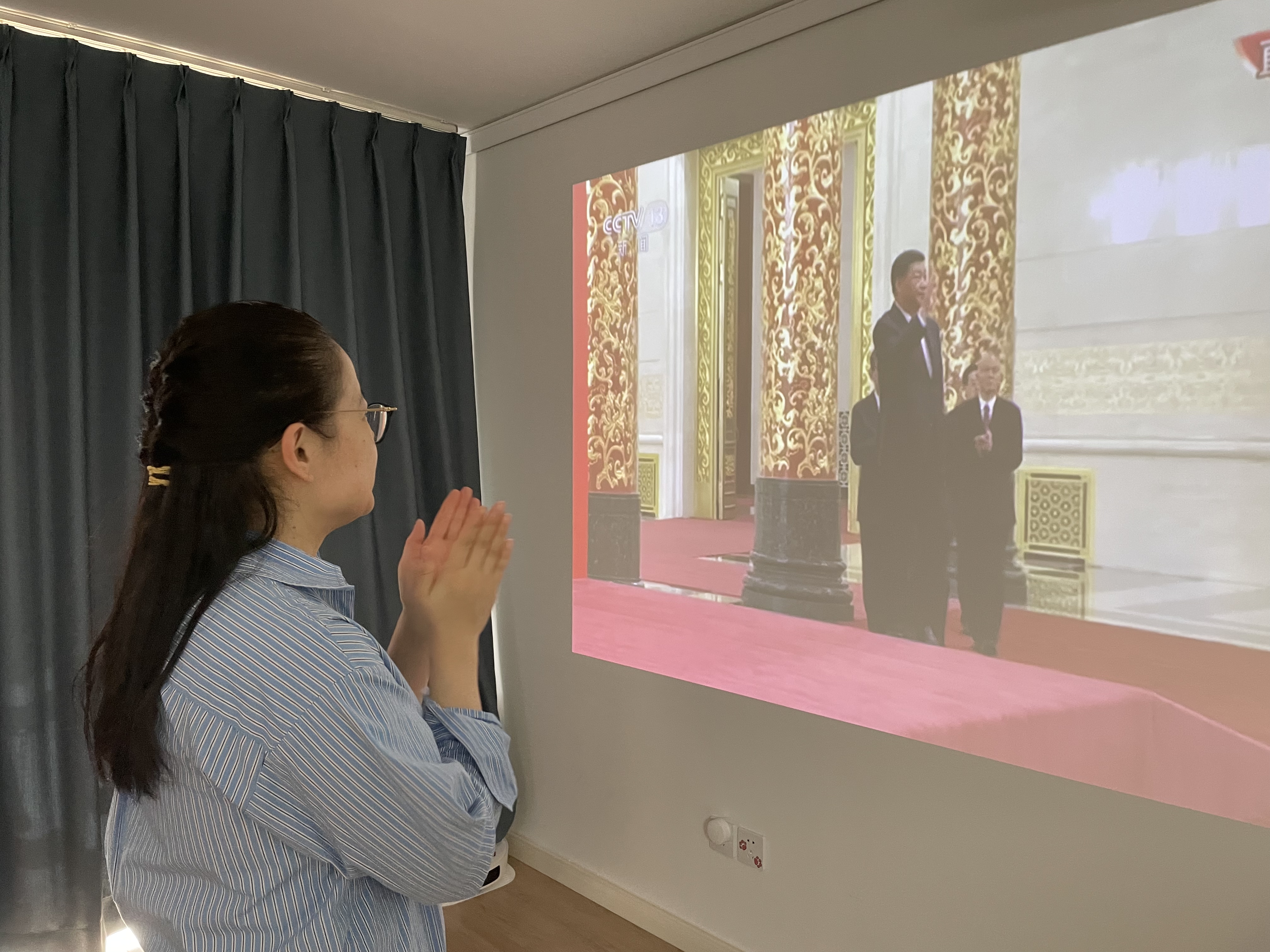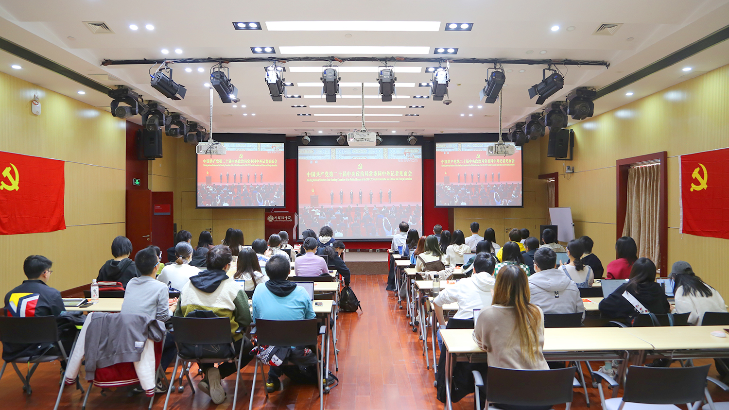 中欧电竞组织师生集体观看第二十届中央政治局常委同中外记者见面会直播