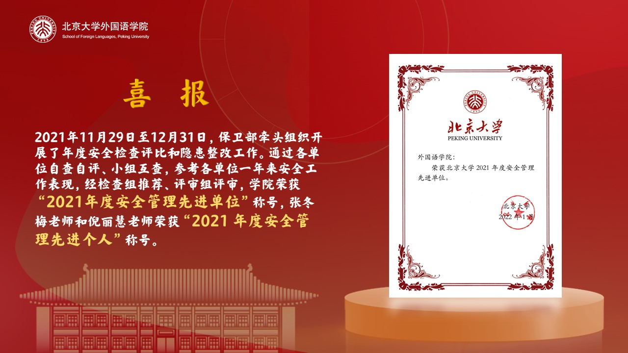 中欧电竞荣获北京大学2021年度安全管理先进单位