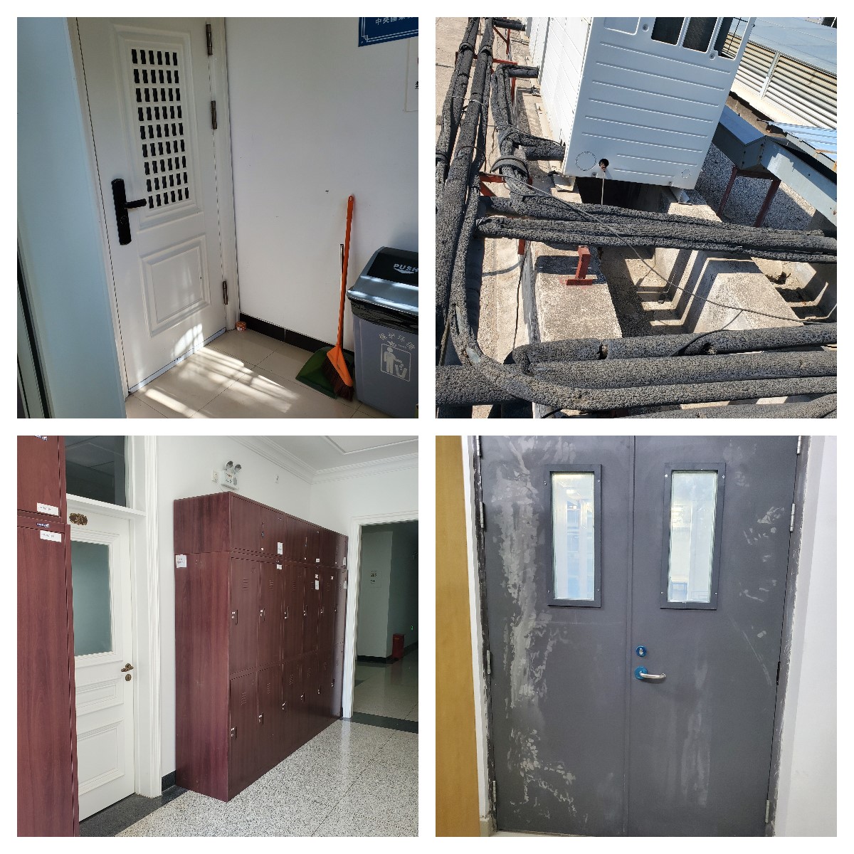 学院新楼地下有三层,且东西两侧有下沉庭院,夏季防汛是工作重点。在汛期,重要的防汛物资,如沙袋、水泵,铁锹等都集中存放于一楼,方便及时处理汛情使用。