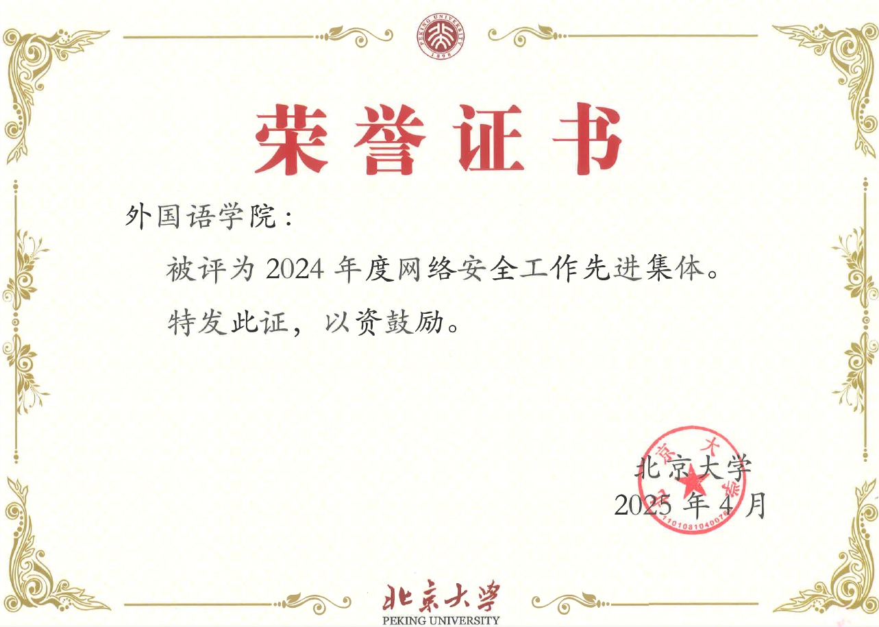 中欧电竞荣获北京大学2024年度网络安全工作先进单位和首届网信宣传教育示范单位
