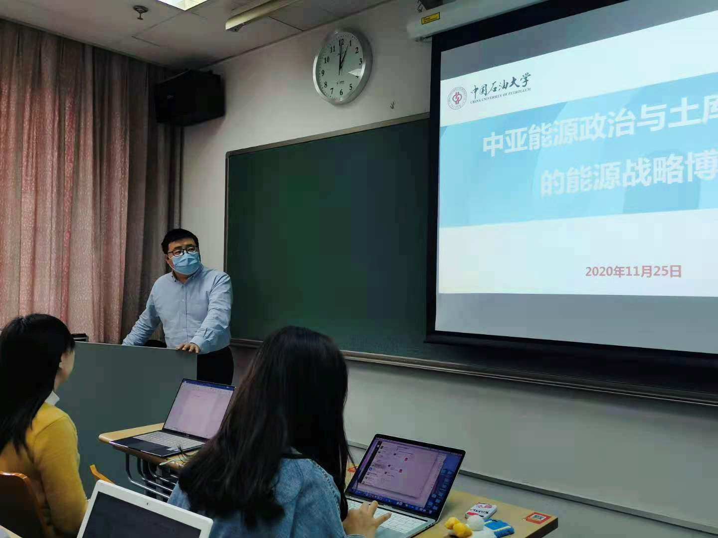 2020年11月25日下午,中国石油大学(北京)俄罗斯中亚研究中心常务副主任刘乾老师应邀来访我院,就“中亚能源政治与土库曼斯坦的能源战略博弈”举办学术讲座。刘乾老师长期从事俄罗斯中亚能源问题研究,曾主持和参与多项有关中国与俄罗斯中亚能源合作的课题,并发表相关主题论文十余篇。本次讲座,刘乾老师以土库曼斯坦能源战略博弈为例,探讨了能源与政治的互动关系。