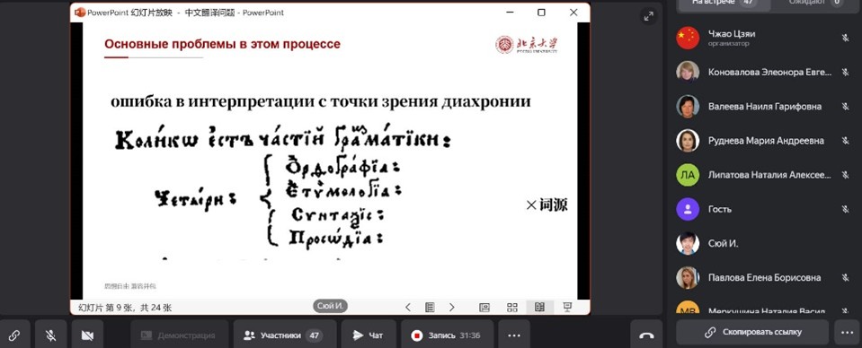 2024年12月3日,中欧电竞俄语系助理教授尹旭应俄罗斯人民友谊大学生态学学院外语系的邀请,在线上为该系师生做了题为《专名的中文翻译·历史回眸》的俄文讲座。