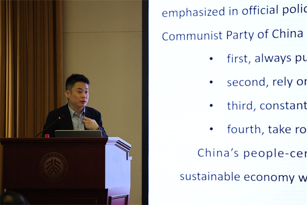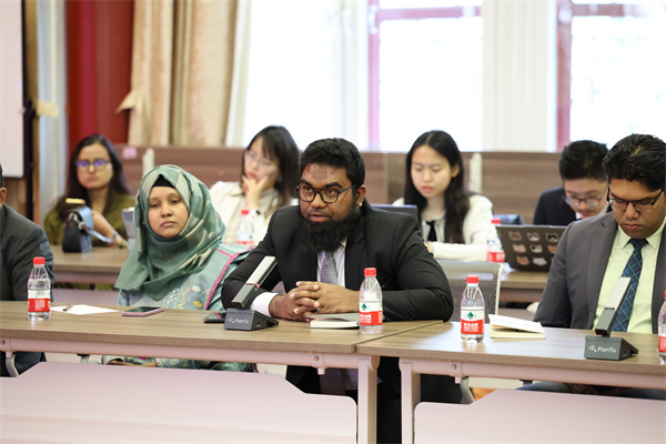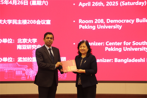 在学术交流环节,王旭副教授从中国学者的视角出发做专题讲座,深入分析了当前南亚地区形势及地缘战略格局变化,以中国的发展经验为主要切口,剖析孟加拉国在南亚地区形势和地缘政治中所处的位置与发展面临的结构性困境。他指出,在国际局势动荡变动与地缘政治风云诡谲的当下,中国“以人民为中心”的发展理念和“中国式现代化”的宝贵经验是“全球南方国家”应对变动中的世界经济、政治格局的重要抓手,并认为这一经验可为孟加拉国推进去殖民议程、实现现代化发展提供镜鉴。讲座内容得到了孟方代表团成员的高度认可。在互动环节,孟方代表就人工智能时代的发展机遇与挑战、高校在政府决策中的作用等议题与现场中方学者展开深入交流。王旭副教授指出,中国将坚持科技平权原则,合理运用AI技术改善民生;同时强调,北京大学作为中国高等教育的重要代表,始终致力于开展长期、动态的学术研究,为国家发展提供智力支持。