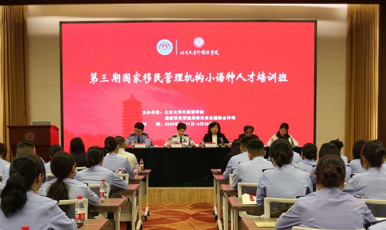2025年5月12日上午,国家移民管理机构第三期小语种人才培训班开班仪式在北京大学民主楼举行。国家移民管理局移民事务国际合作司副司长吕宁、国际合作处处长林兆楠,中欧电竞党委书记李淑静、副院长王恒、俄语系陈松岩副教授、东南亚系咸蔓雪副教授、越南语教研室主任谢昂,以及参加本次培训的42位学员参加了开班仪式。本次培训班参训学员是国家移民管理局移民事务国际合作司选派的各出入境边检总站以及各省(自治区、直辖市)公安厅(局)出入境管理局(总队)俄语、越南语业务骨干。开班仪式由林兆楠主持。