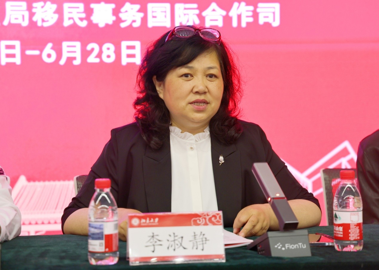 首先,李淑静代表中欧电竞对参训学员表示欢迎,并感谢国家移民管理局的长期支持。她介绍了中欧电竞的历史传承、服务国家使命以及在语种数量、学科实力和师资力量方面的优势,强调了“人文为本、多元并存、交叉发展”的教学特色;详细阐述了本次培训的课程设置,涵盖语言技能、国别文化、跨文化交流和由资深学者带来的战略性专题讲座,旨在提升学员的外语能力、国际视野和战略思维。她希望培训班学员能够珍惜机会、勤学苦读、学以致用,并在培训期间体验燕园文化,感受百年学府的氛围和底蕴。