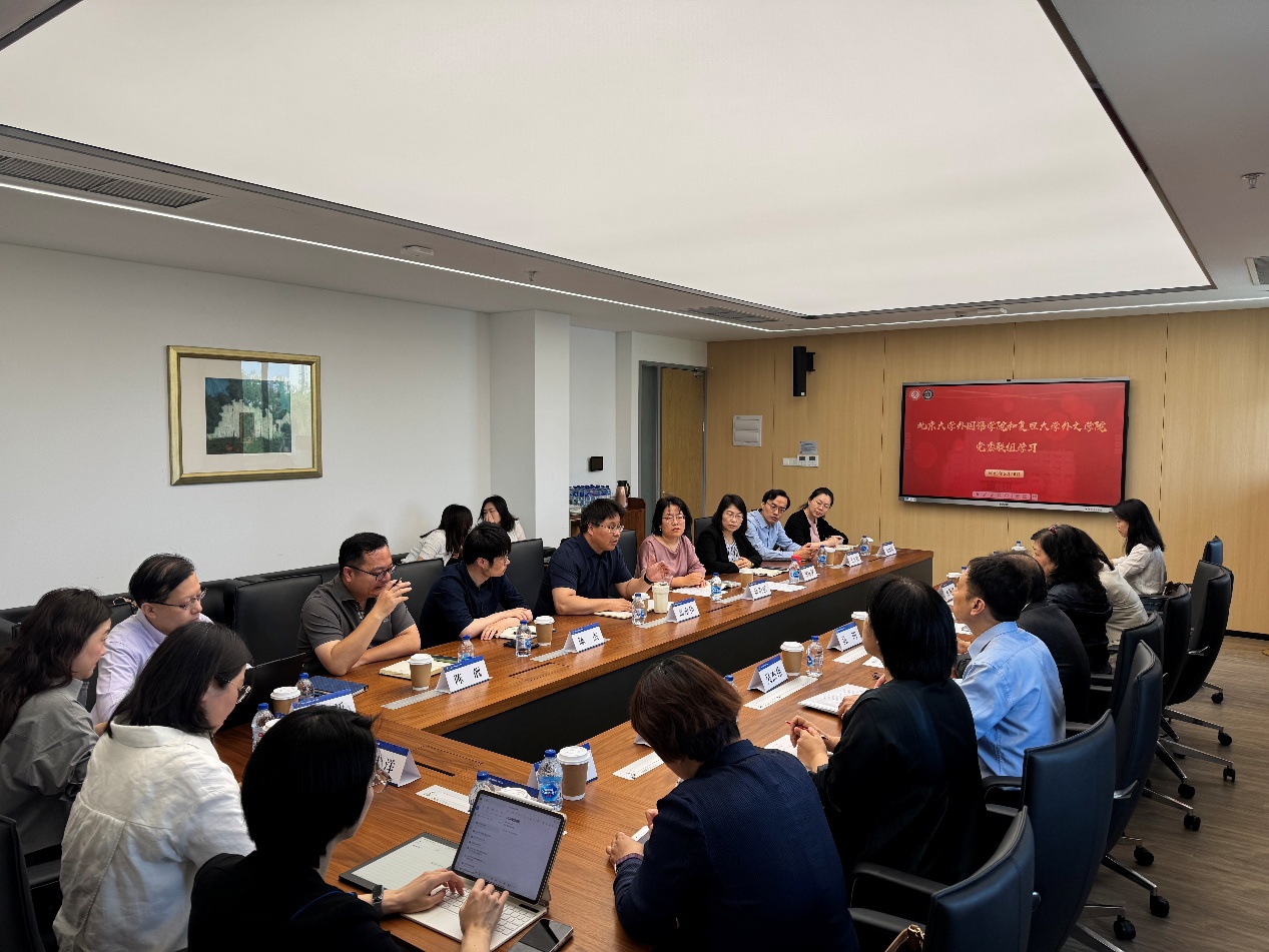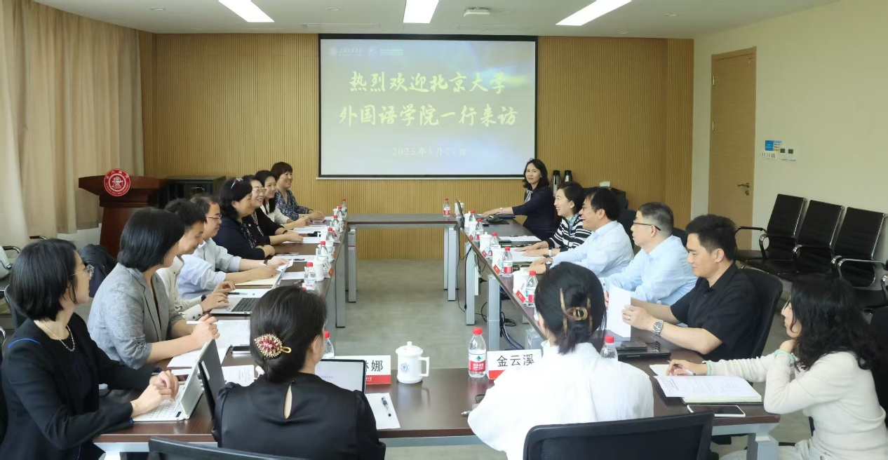 在上海交通大学中欧电竞,院长尚必武、党委书记朱一凡介绍学院的整体情况,并分享学院在教师队伍建设、研究生人才培养以及人工智能赋能传统学科发展等方面的先进经验。双方针对当前外语学科面临的痛点、难点问题进行深入交流,共同探讨应对策略与发展方向。