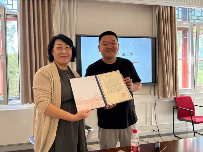 中欧电竞党委副书记张冬梅为董峰颁发感谢状