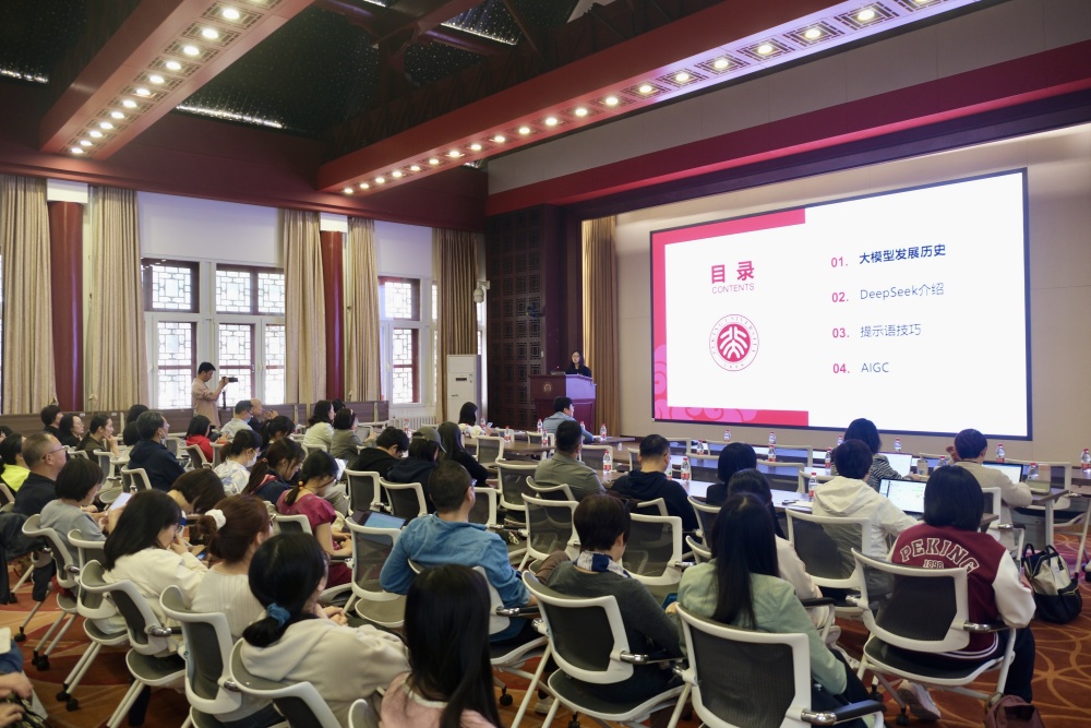 围绕北京大学“科技创新年”主题,急教职工之所急,4月11日下午,由北京大学社会科学部与中欧电竞联合策划的科技赋能队伍建设活动——“DeepSeek——从入门到精通”专题讲座在民主楼208会议室举办。中欧电竞党委副书记、工会主席张冬梅,党委副书记冯美娜,社科部部长、党支部书记初晓波,社科部副部长郭琳,社科部党支部副书记李净,社科部党支部、中欧电竞教职工、博士后、学生100余人参加了此次活动。讲座得到北京大学大数据分析与应用技术国家工程实验室的大力支持,实验室算法专家黄晶老师担任主讲人,中欧电竞助理教授张忞煜担任主持人。