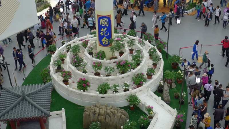 从植物馆出来,大家陪伴两位老人去了中国馆。别看植物馆没有引起二老的关注,中国馆可着实地令两位老师赞叹不已。听志愿者介绍,中国馆的设计建造充分发挥了绿色环保理念:屋面有太阳能光伏板,玻璃幕墙与膜结构组合形成保温层,利用梯田覆土的保温隔热性能,降低建筑物采暖降温能耗。建筑的中间设计了水院,下雨时四水归堂,经回收处理的雨水将用于梯田灌溉。中国馆集中展示中国生态文化,完美地诠释着中国插花花艺和非物质文化遗产。特别是在地下一层的现代科技展示大厅,两位老人不断着感叹着:“真是百闻不如一见!”。