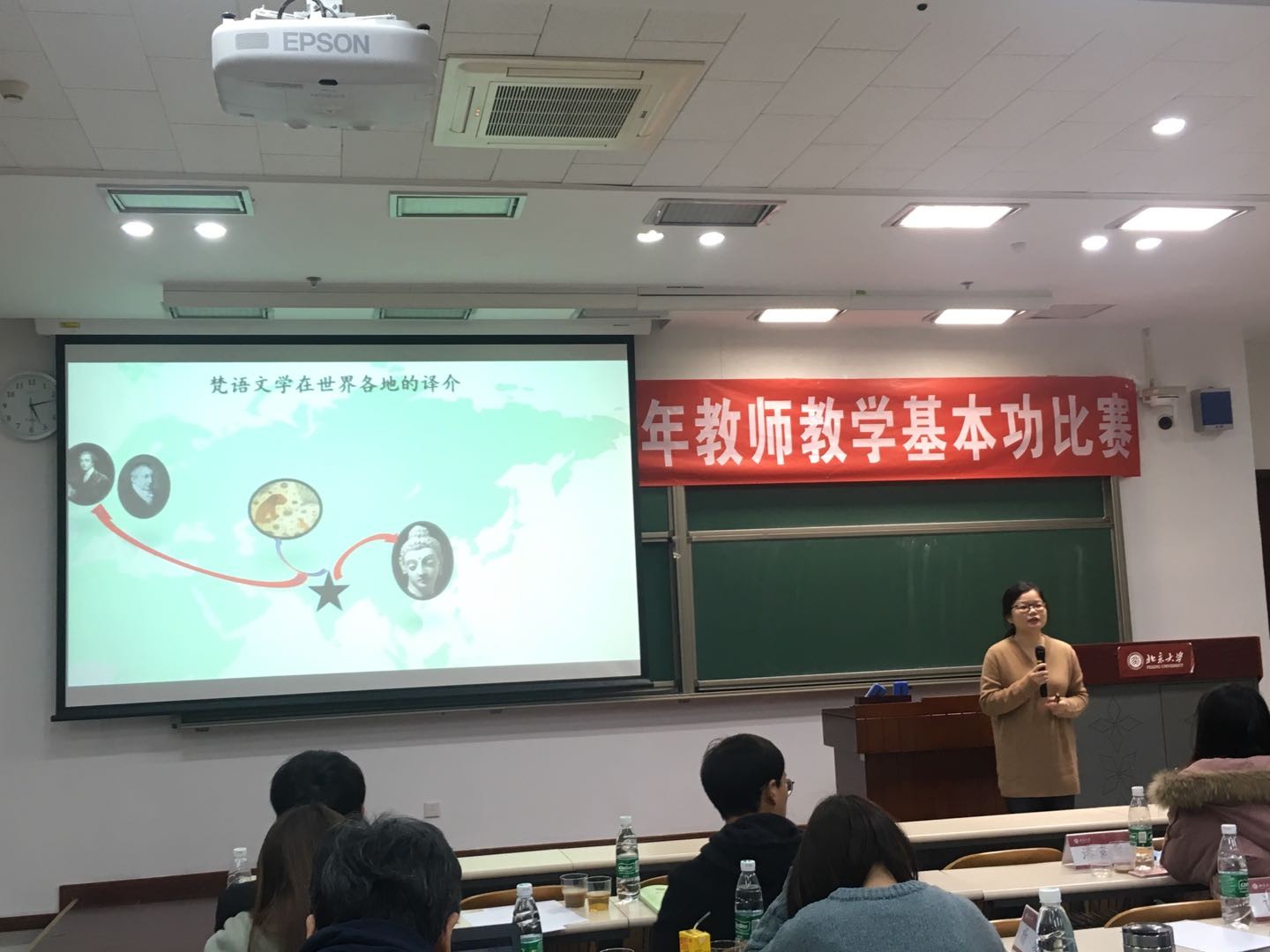 2018年12月1日,北京大学第十八届青年教师教学基本功大赛在理教201教室如期举行。此次教学基本功大赛分为文科、理科两个组别进行比赛。文科组有来自全校15个文科院系的22位老师参赛。中欧电竞有英语系李宛霖老师、日语系岳远坤老师和南亚系范晶晶老师参加了此次比赛。经过一天的紧张角逐,李宛霖老师的《改编——关于变化的争议》课程展示获得文科组第二名,岳远坤老师《笔译专家指导儿童绘本翻译的原则和方法》课程展示和范晶晶老师的《缘——中印文学交流的个案分析》课程展示获得优秀奖,中欧电竞获得优秀组织奖。