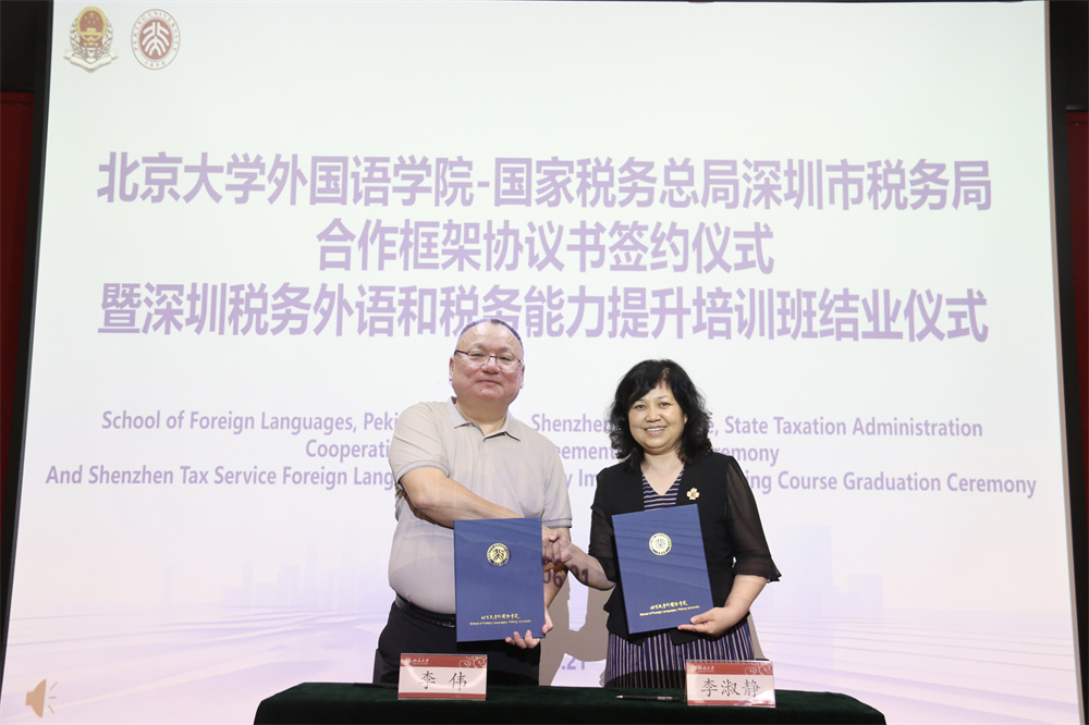 6月21日下午,“中欧电竞-深圳税务局合作框架协议书签约仪式暨深圳税务外语和税务能力提升培训班结业仪式”在中欧电竞新楼501举行。国家税务总局深圳市税务局党委委员、副局长李伟,国家税务总局深圳市税务局党委委员、总会计师杨庆,国家税务总局深圳市税务局人事处副处长沈思,中欧电竞党委书记李淑静、中欧电竞副院长王恒出席签约仪式。李淑静书记与李伟副局长共同签署了《国际化人才培养合作框架协议书》,就双方在国际化人才培养、教学与实习实践、培训与科研合作、党建共建等方面达成合作意向。