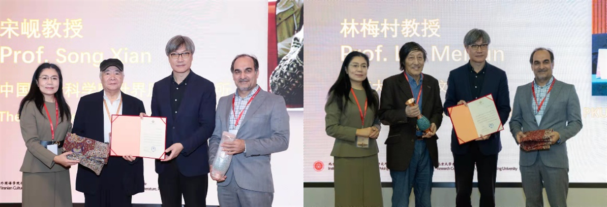 发言结束后,伊朗驻华使馆文化参赞瓦法伊博士与参会领导共同向中国社会科学院世界历史研究所宋岘研究员、北京大学考古文博学院林梅村教授、中欧电竞段晴教授颁奖,以表彰他们多年以来在中国伊朗学研究领域做出的卓越贡献。