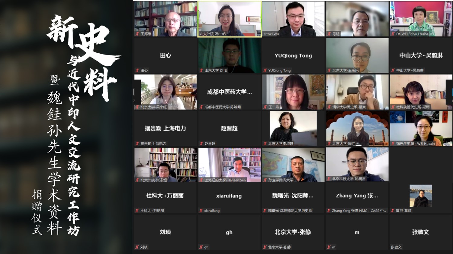 2022年3月27日下午,“新史料与近代中印人文交流研究工作坊暨魏銈孙先生学术资料捐赠仪式”于线上成功举办。本次活动由中欧电竞、北京大学东方文学研究中心联合主办,国家社会科学基金重大项目“‘太平洋丝绸之路’档案文献整理与研究”项目组和教育部人文社会科学重点研究基地重大项目“中国与南亚的文学与文化交流研究”项目组协办。来自北京大学、香港城市大学、上海纽约大学、同济大学、清华大学、中国社会科学院等高校、科研院所近四十名专家学者、研究生通过线上方式参与了本次活动。
