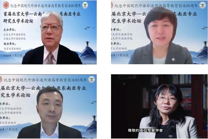 论坛开幕式由云南大学中欧电竞副院长臧运发教授主持,云南大学中欧电竞院长刘树森教授、中欧电竞副院长王丹教授、中欧电竞副院长吴杰伟教授、北京大学出版社外语编辑室张冰主任分别致辞。嘉宾们在致辞中纷纷表示,此次论坛的举办是北京大学与云南大学非通用语种专业深度合作的活动之一,对两校东南亚、南亚专业研究生的交流和人才培养具有重要意义。